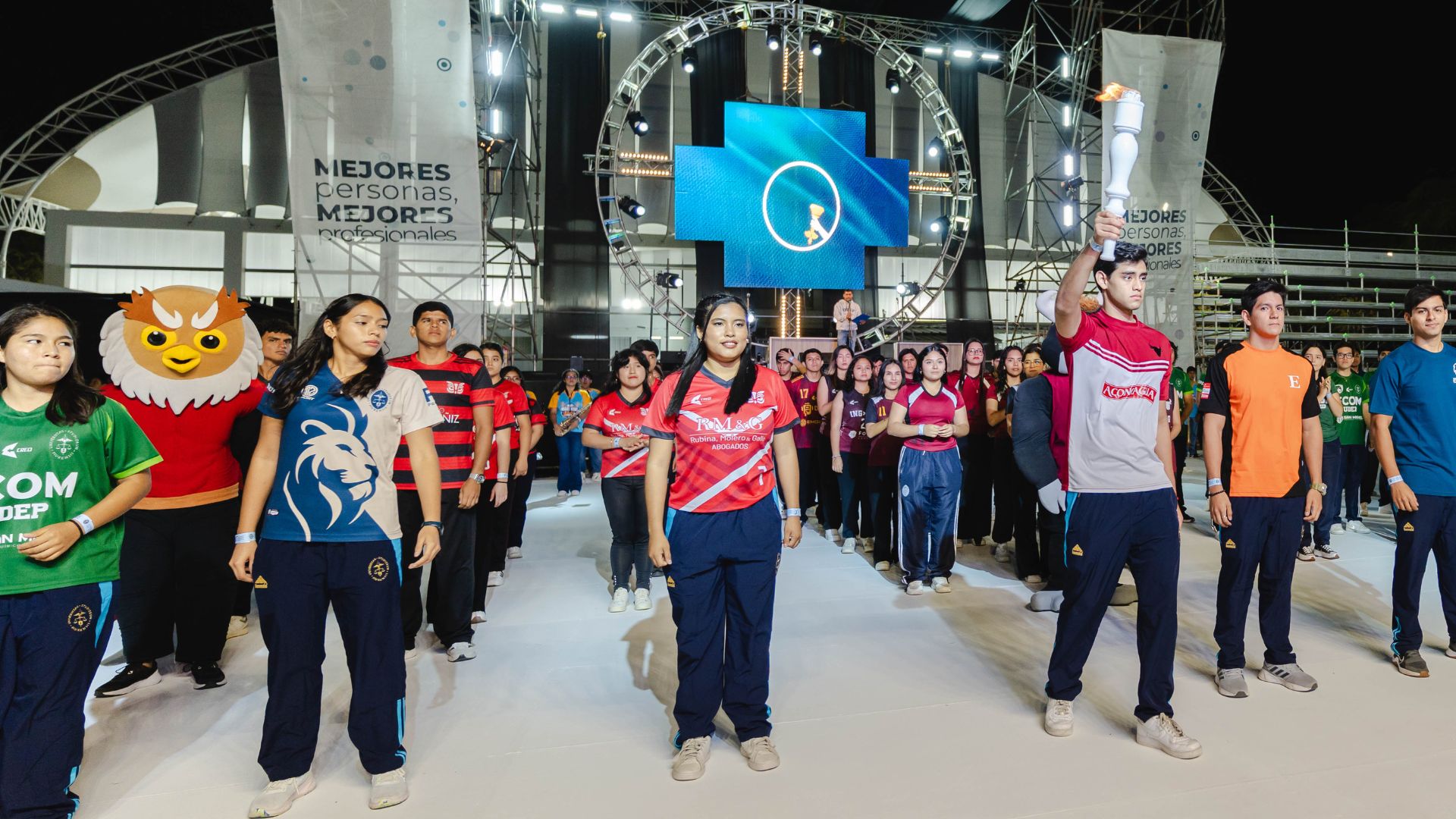 La Marching Band marcó el inicio con música, seguida del desfile de delegaciones. El rector, Dr. Paul Corcuera, junto al alumno Francis Rivera (Derecho), izó la bandera universitaria. Luego, la llama olímpica fue encendida por Marcelo Quevedo (Ingeniería), acompañado por representantes de cada facultad.